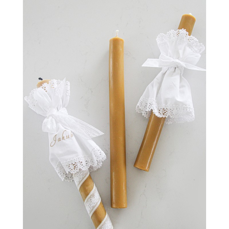 Prezentujemy Państwu świecę gromnicę - naturalna alternatywa parafinowych gromnic do chrztu. Od dawna świece woskowe stosowane były w obrzędach liturgicznych. W galerii zdjęć pokazaliśmy propozycję dekoracji. Tato chrzestny, pamiętaj - prosta, elegancka wersja świecy może spodobać się niejednej mamie dziecka. Świeca ta może służyć jako ozdoba wnętrz dla kogoś kto gustuje w naturalnych i oryginalnych przedmiotach.